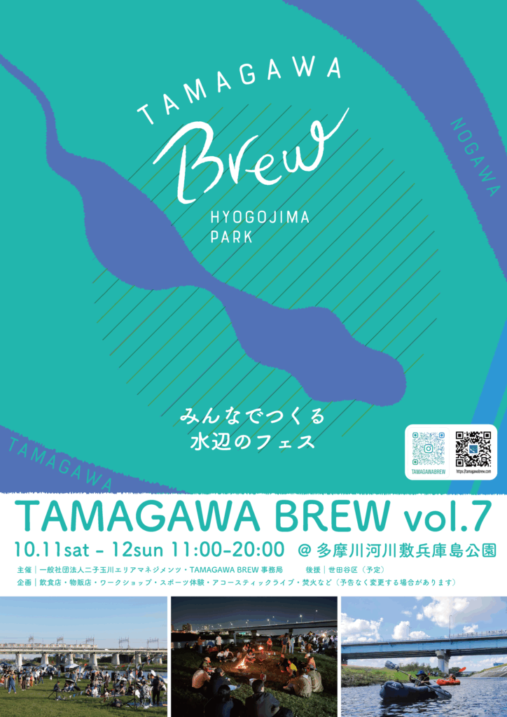 2025年10月11日(土)・12日(日)に世田谷区二子玉川の多摩川河川敷・兵庫島公園にて,水辺を楽しむフェス「TAMAGAWA BREW Vol.7」を開催いたします。大森研究室は事務局及び会場設営として参画しています。ぜひ足をお運びください。